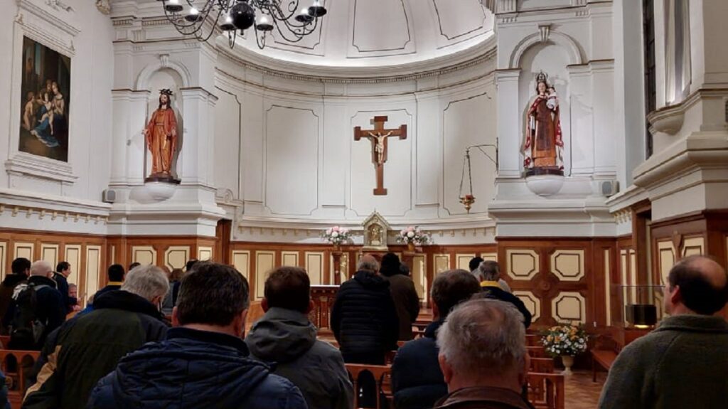 Con mucho entusiasmo participaron más de 60 Madrugadores, quienes después de la visita al Olivo y Estatua de Juan Pablo II iniciaron una pequeña Peregrinación por el interior de la Casa Central de la Universidad Católica, con tres momentos de Reflexión, oración y canto. Un momento significativo fue la oración por la beatificación de Mario Hiriart.